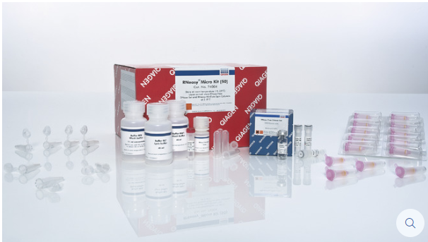 RNeasy Kits are the Gold standard for total RNA isolation. They provide fast purification of high-quality RNA from small to large amounts of cells, tissues, and yeast using silica-membrane RNeasy spin columns or 96-well plates. Tissue samples can be conveniently stabilized using RNAprotect Tissue Reagent or Allprotect Tissue Reagent, and efficiently disrupted using a TissueRuptor II or TissueLyser II or LT system. The RNeasy 96 Kit enables high-throughput purification of total RNA from up to 96 cultured-cell samples using silica-membrane RNeasy 96 plates. A dedicated RNeasy QIAcube Kit enables automated purification of 1–12 samples on the QIAcube Connect.